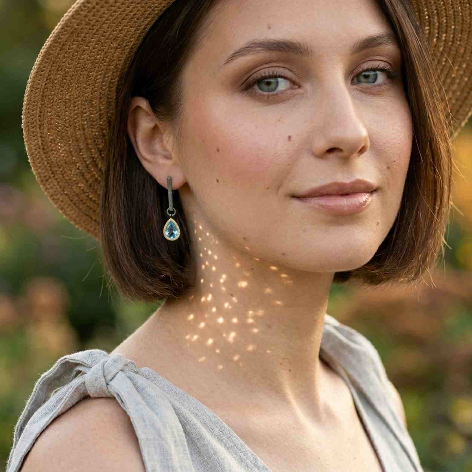 Arracades de plata, or groc de 18q i dos topazis blaus.