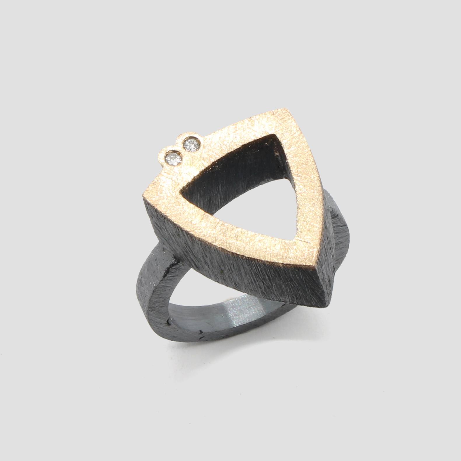 Anillo de plata, oro amarillo de 18k y dos diamantes naturales talla brillante.