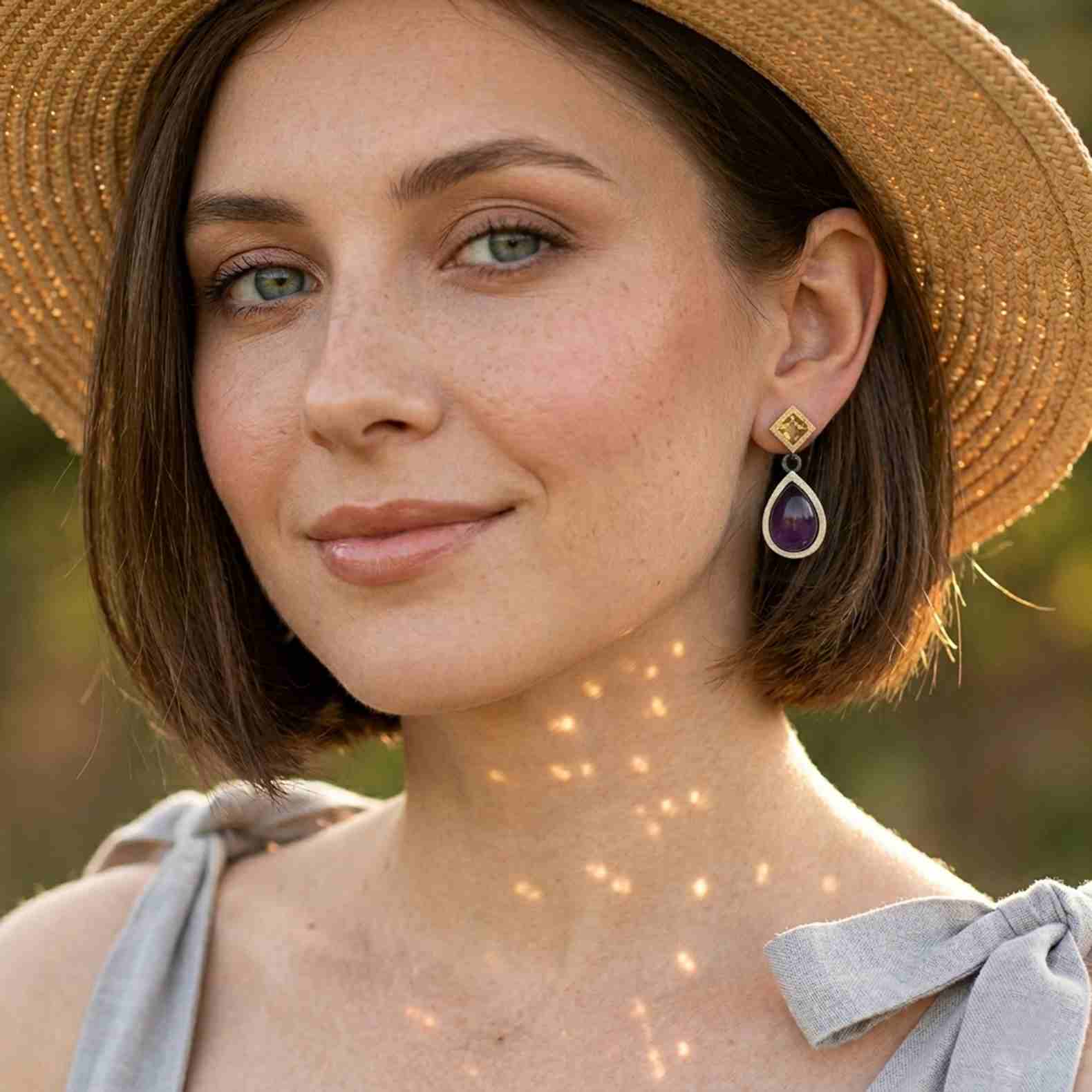 Pendientes citrinos y amatistas