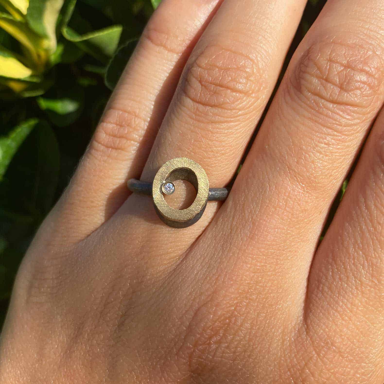Anillo de plata, oro amarillo de 18k y un diamante natural talla brillante.