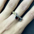 Anillo de plata, oro amarillo de 18k, un diamante natural talla brillante y un rodolito.