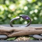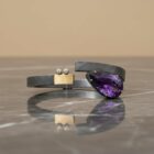 Espectacular pulsera de plata y oro amarillo de 18k con una amatista talla perilla acompañada de dos diamantes naturales talla brillante.