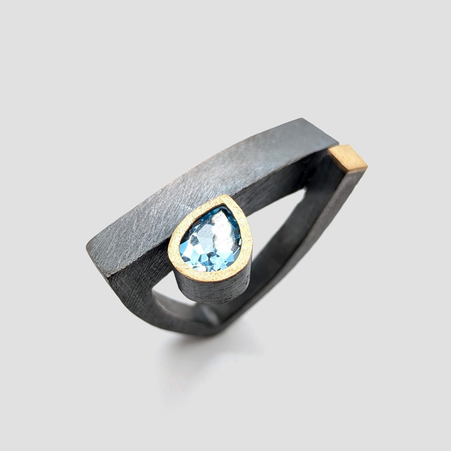 Anell de plata, or groc de 18q i un topazi blau.