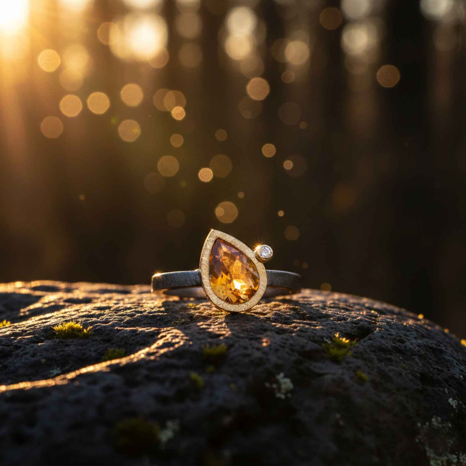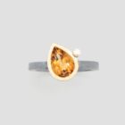 Anell de plata, or groc de 18q, un diamant natural talla brillant i un citrí.