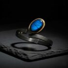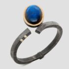 Espectacular polsera de plata i or groc de 18q amb una labradorita acompanyada de dos diamants tall brillant..