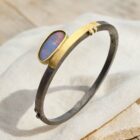Elegant polsera de plata, or, un òpal doublet i dos diamants naturals talla brillant. Els colors d’òpal donen vida a aquesta peça única.